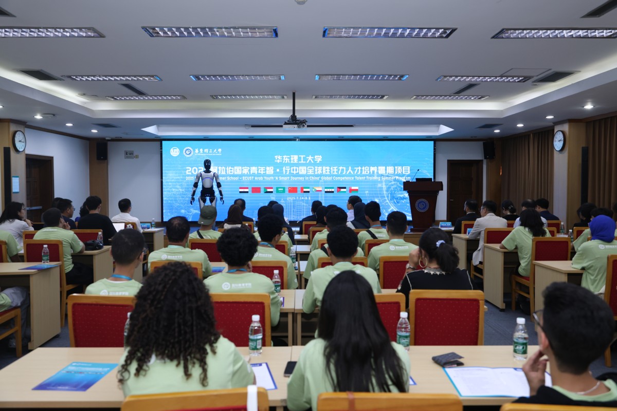 July 14, 2025 - The opening ceremony of the 2025 Shanghai Summer School - ECUST Arab Youth “A Smart Journey in China” Global Competence Talent Training Summer Program was held at the Yifu Auditorium. This marks the university’s first technology-focused summer program dedicated to young talents from Arab nations, attracting 33 outstanding participants from nine countries, including the UAE, Saudi Arabia, and Morocco.